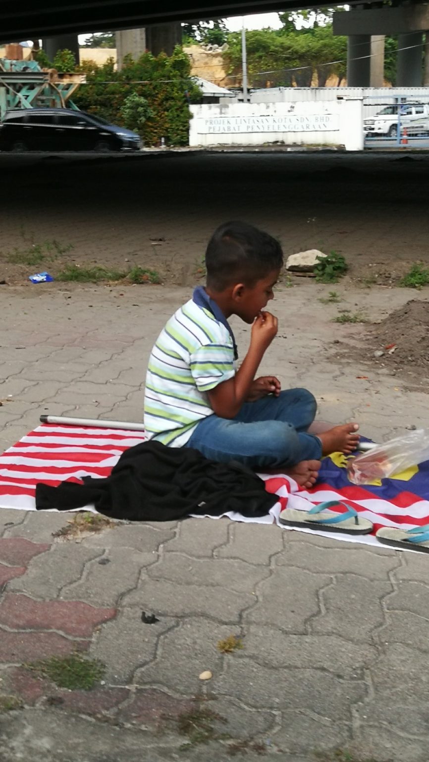 Rakyat Malaysia berang, budak Rohingya selamba mengemis atas Jalur Gemilang
